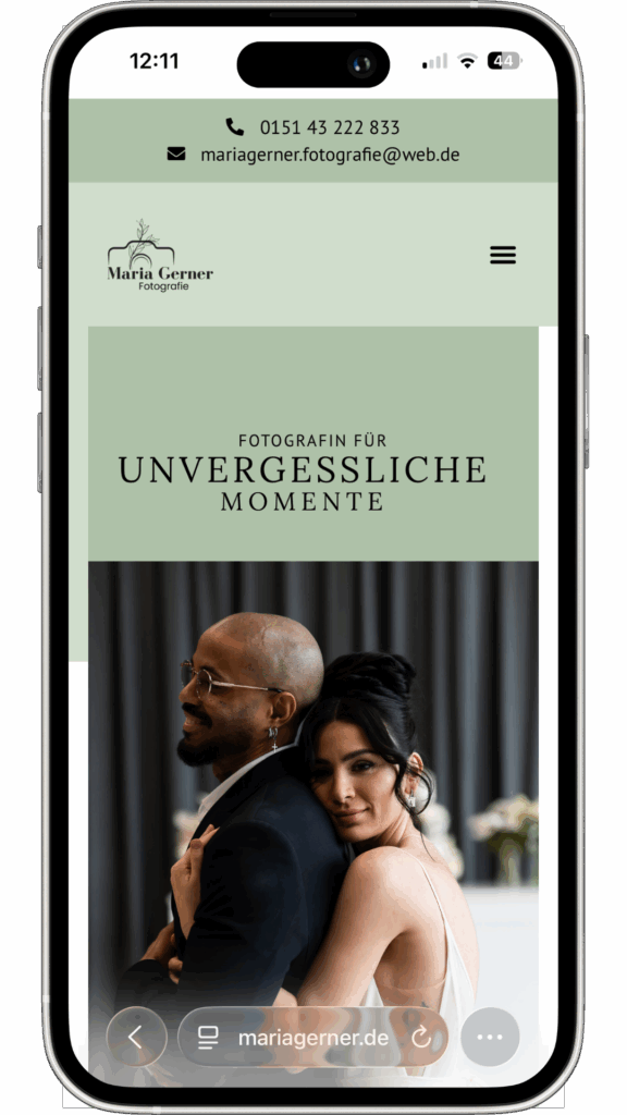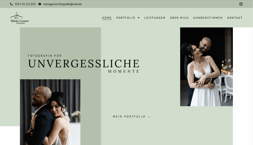 Wir haben eine moderne, elegante Webseite entwickelt, die ihr Portfolio optimal in Szene setzt und potenziellen Paaren einen authentischen Einblick in ihren Stil gibt. Durch ein integriertes Kontaktformular können Anfragen nun direkt und unkompliziert gestellt werden – für einen reibungslosen ersten Kontakt und eine stärkere Online-Präsenz.